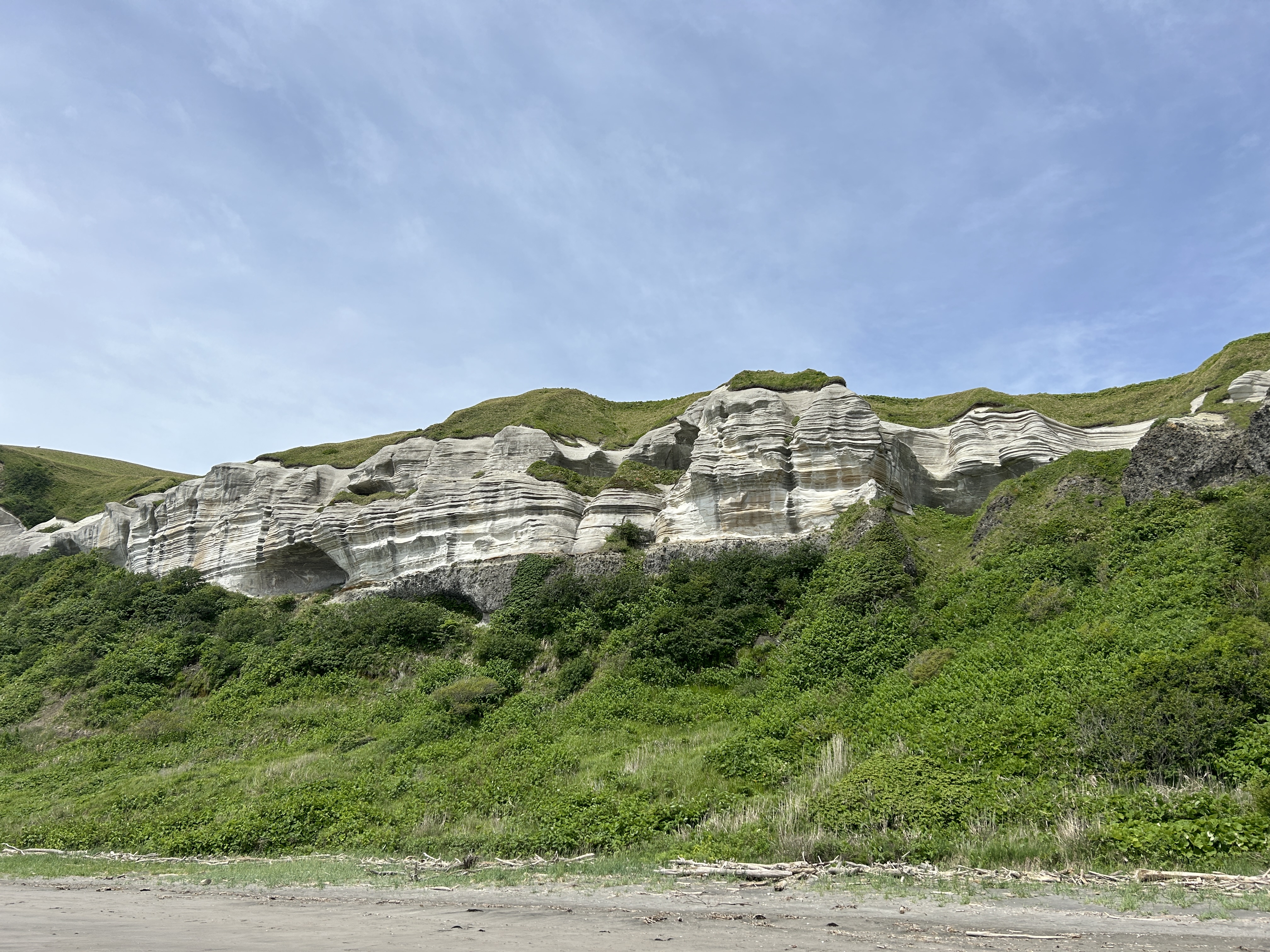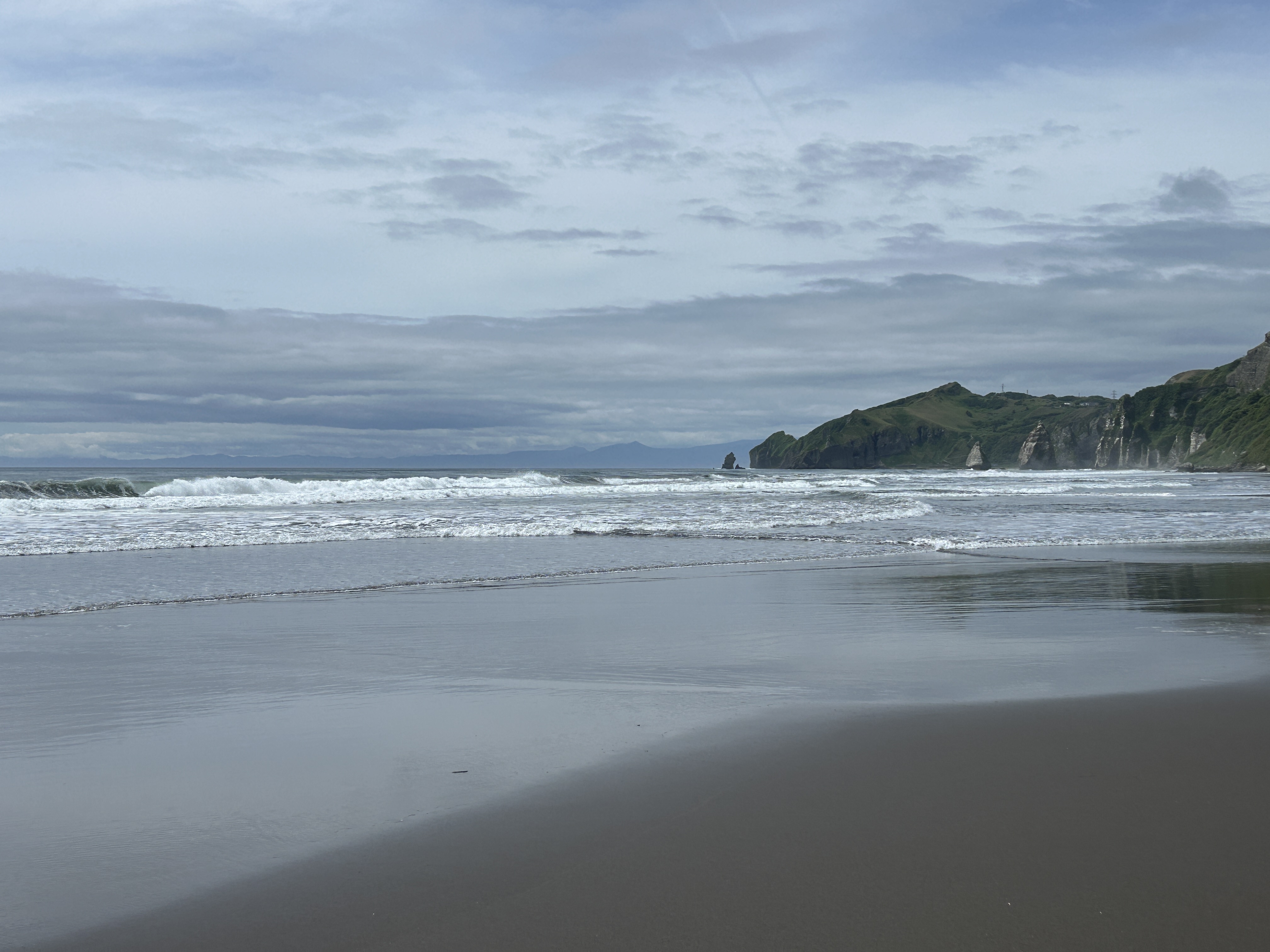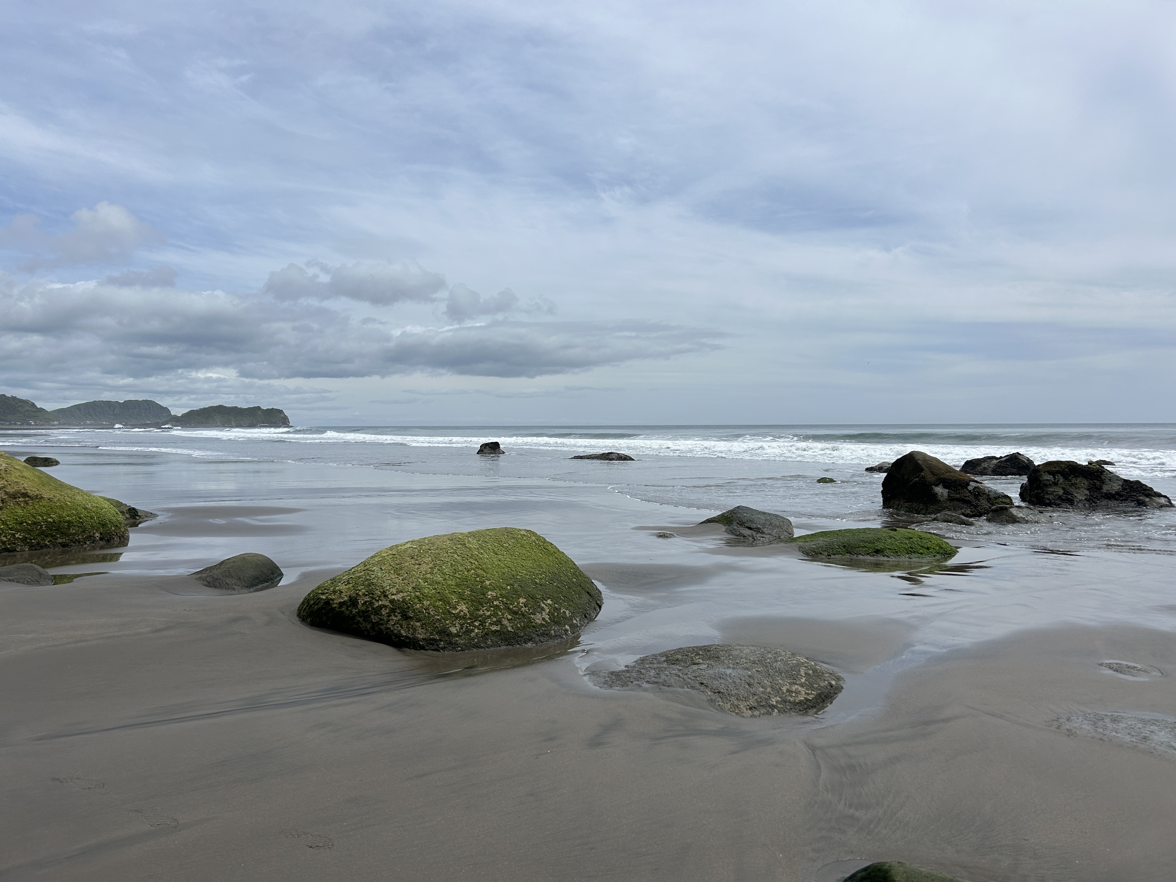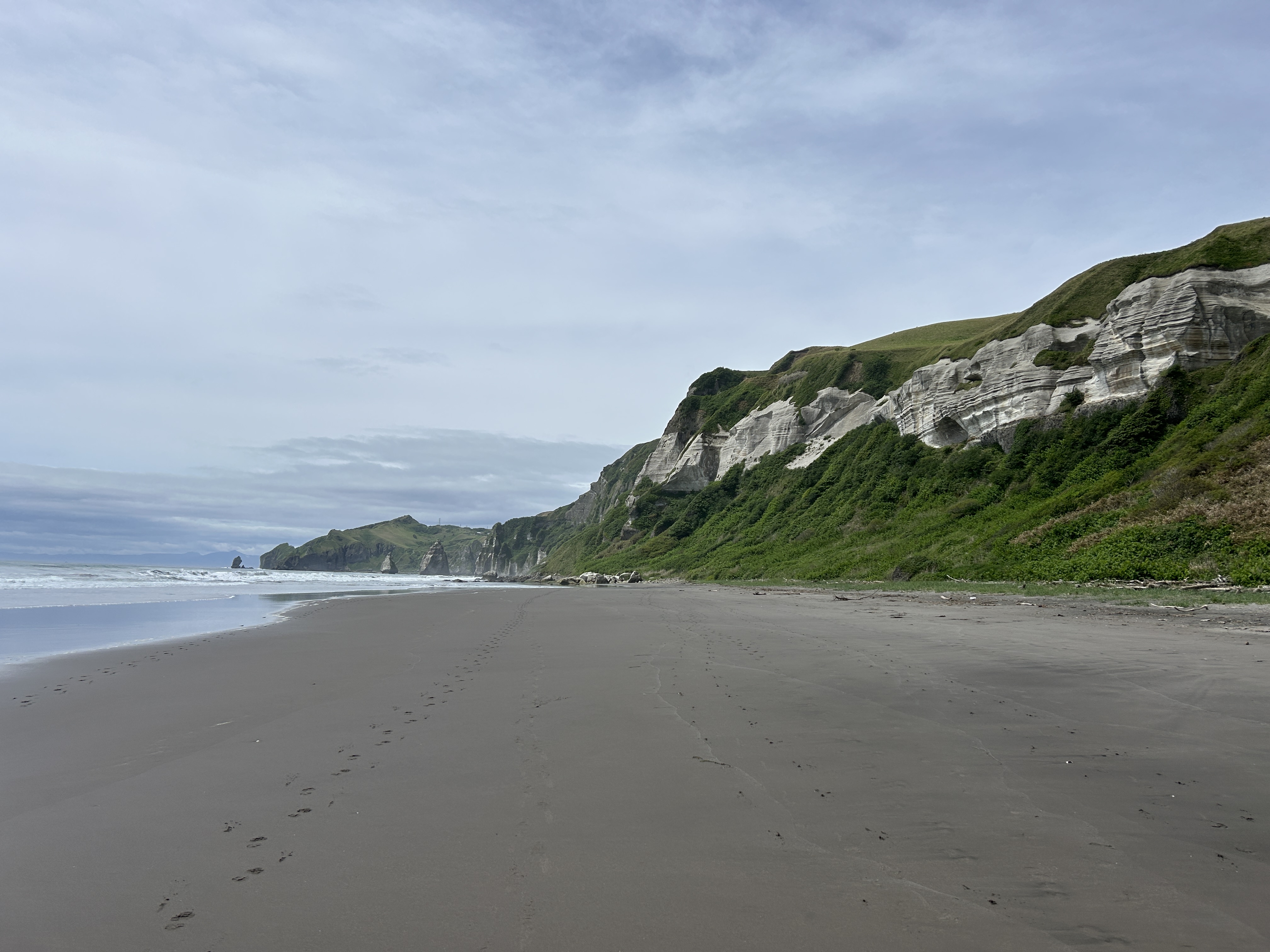 遠浅の海にきらきらの波と砂浜。断崖の地層も独特。端っこまで無心で歩く。心奪われる風景でした〜。