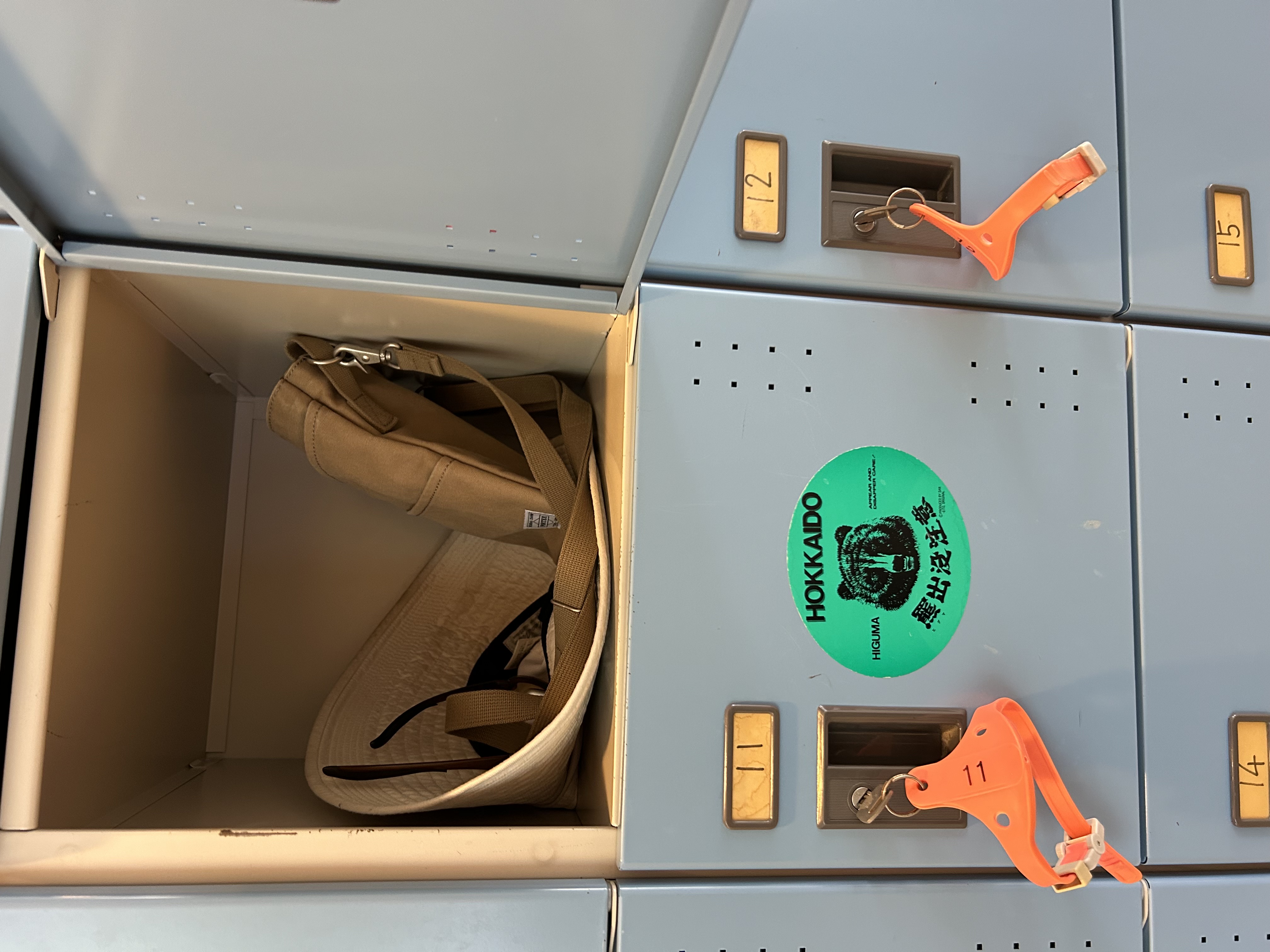 なんと貴重品ロッカーにも“熊注意”のステッカーが!