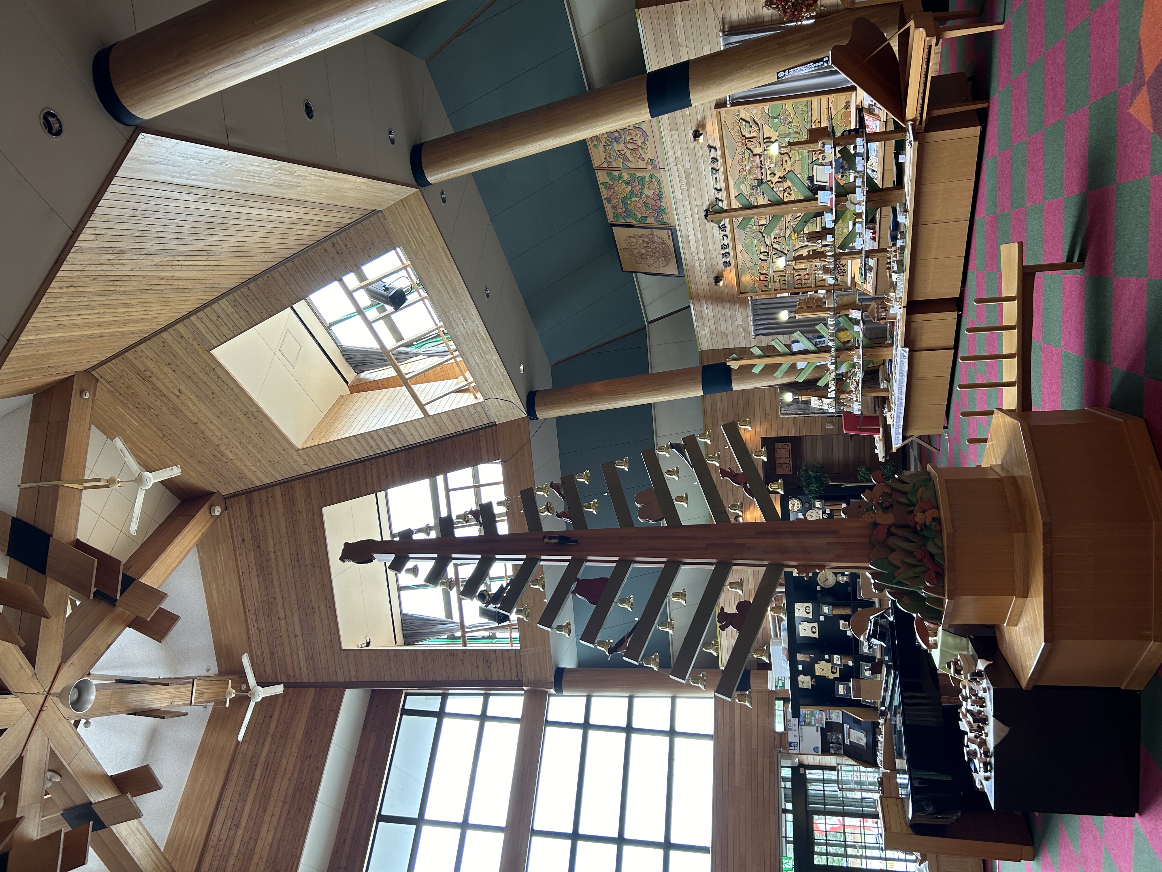 店内には木工品がズラーっと!天井が高くとてもカワイイ造りです。