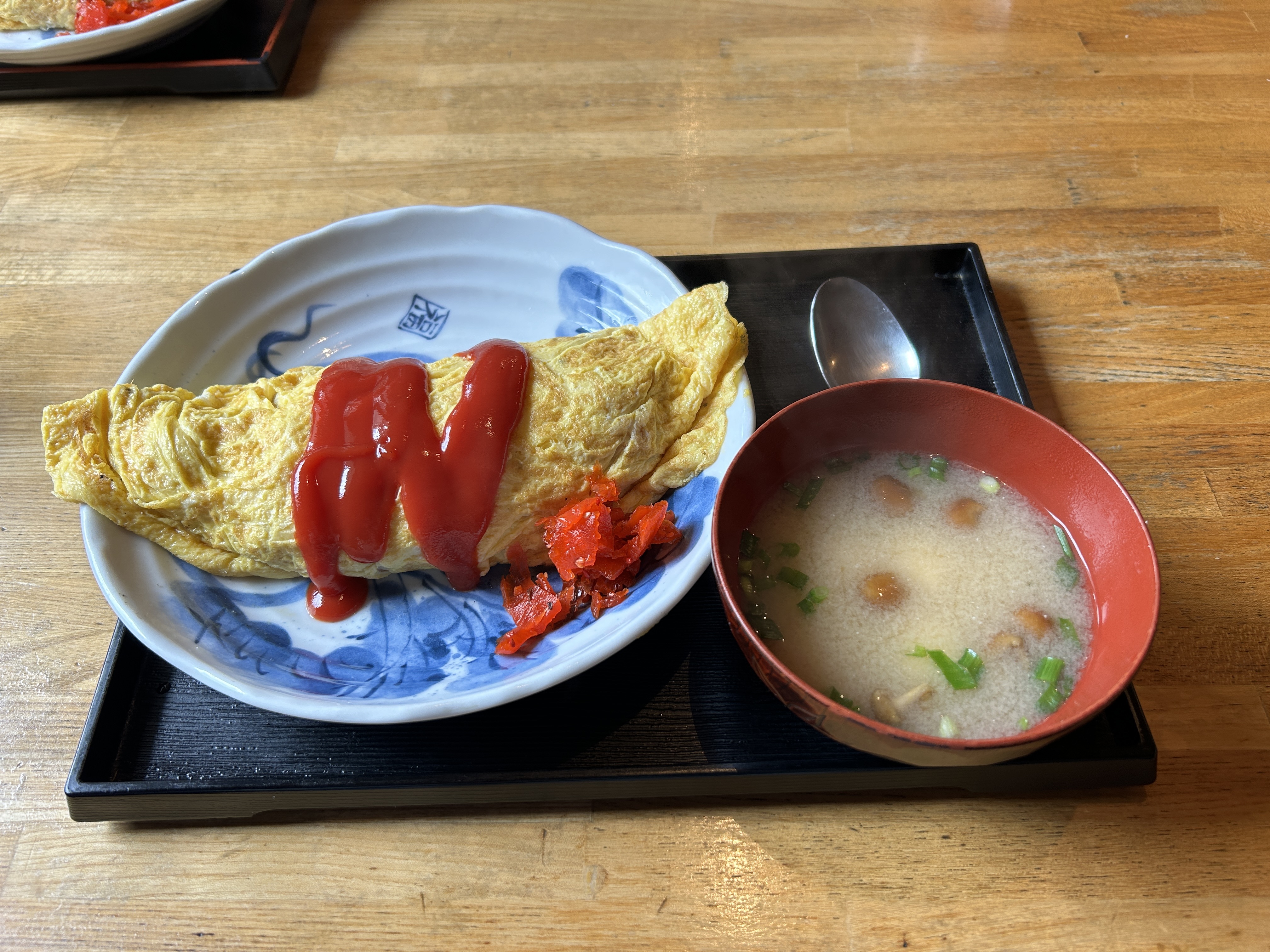 丸瀬布駅前の「れすとらんジョイ」でオムライス。見事に無愛想なおかみさん。なめこと豆腐の味噌汁が旨かったので許す。