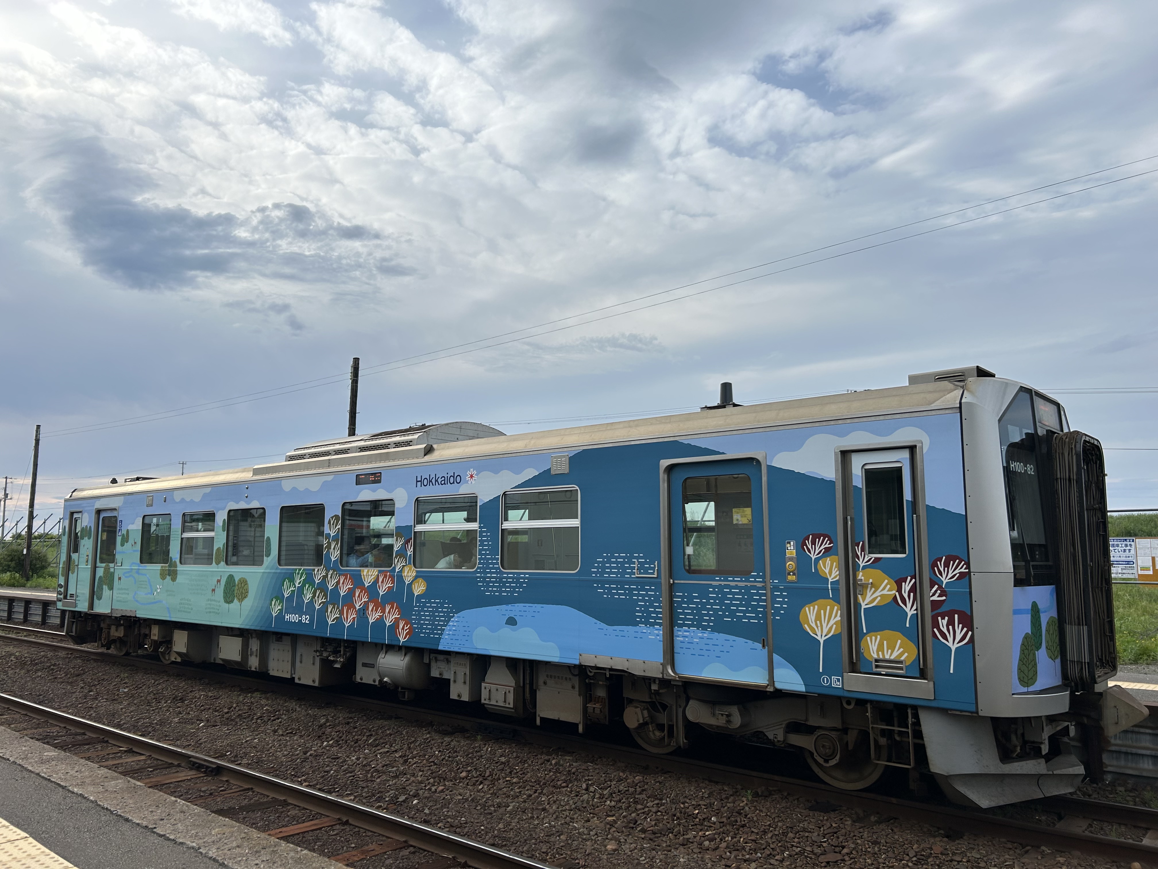 道の駅の裏側に釧網本線が走っていて、なんとカワイイ列車が停車してました。