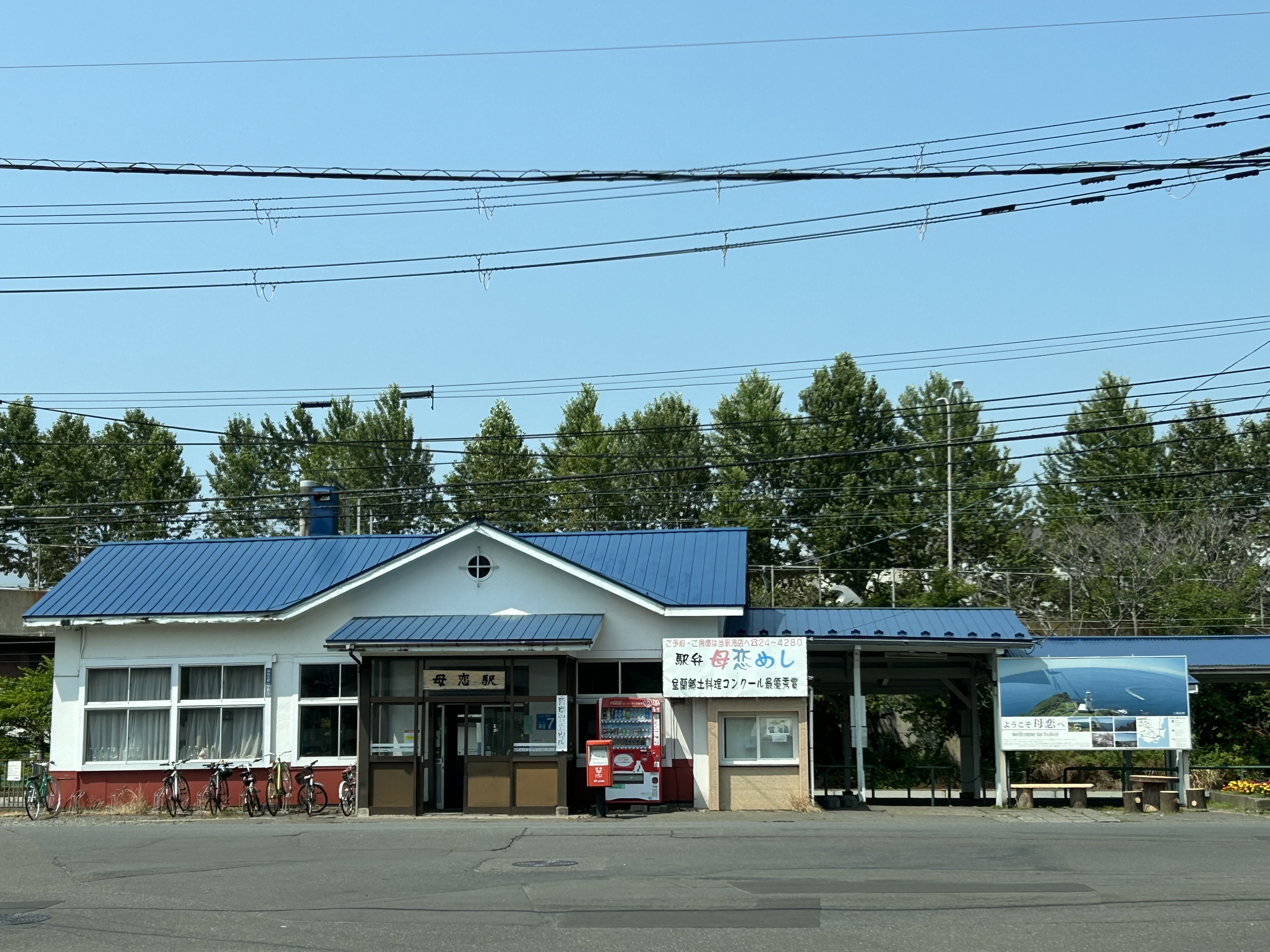 お風呂へ向かう途中、駅弁「母恋めし」の母恋駅前を通過!