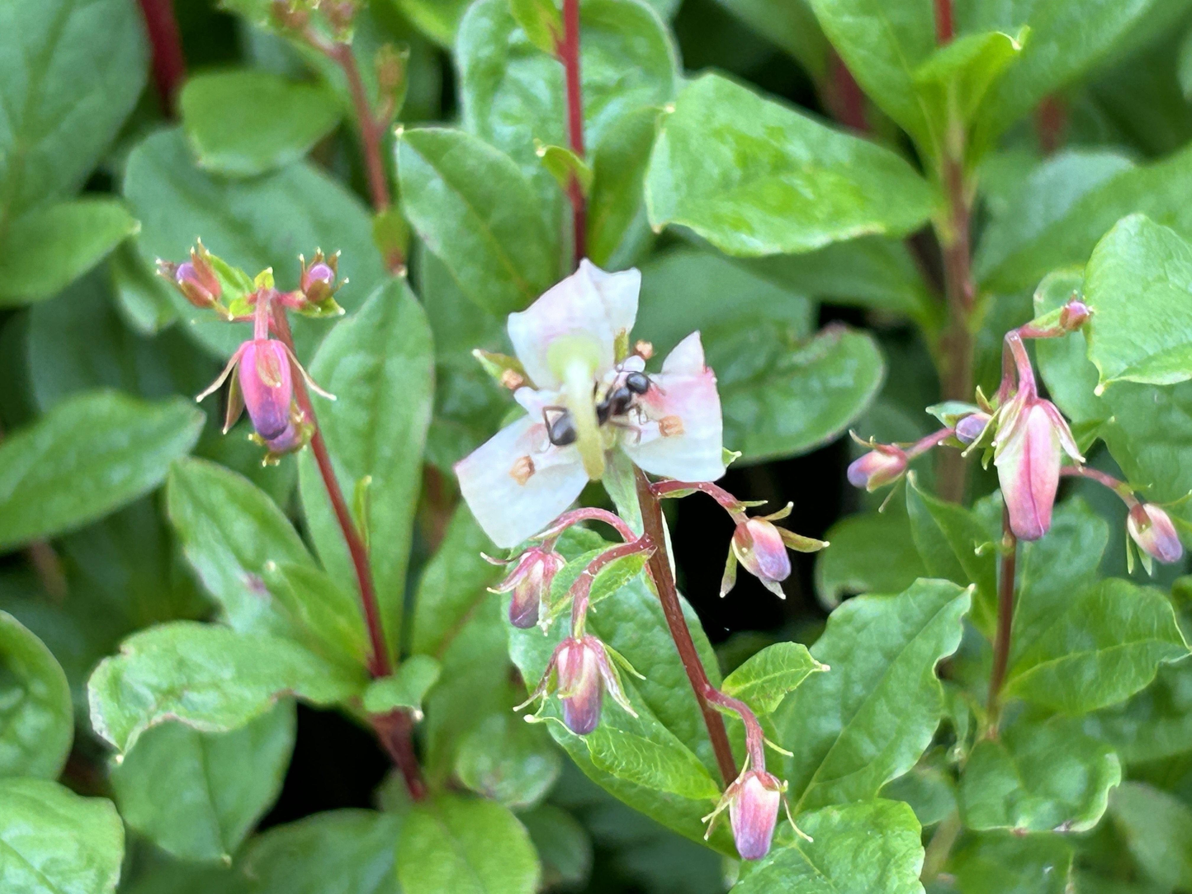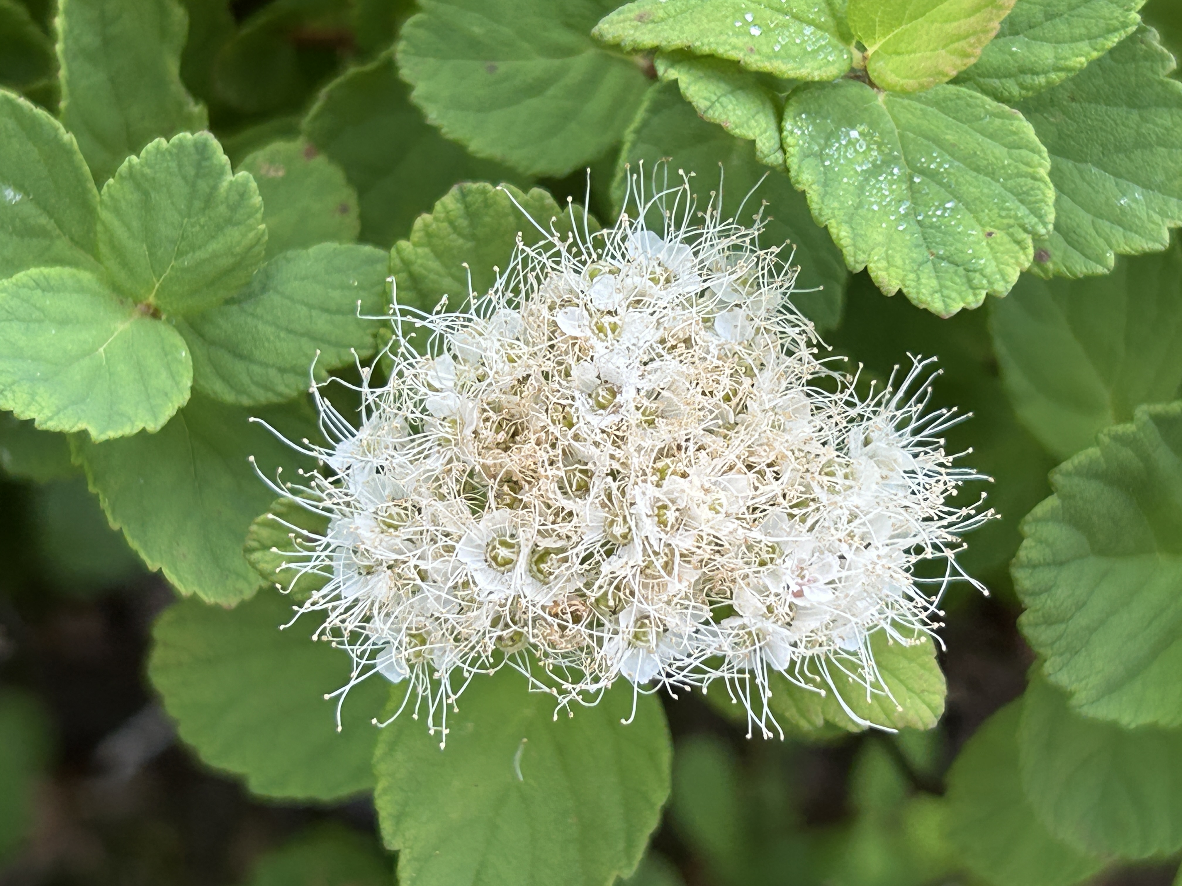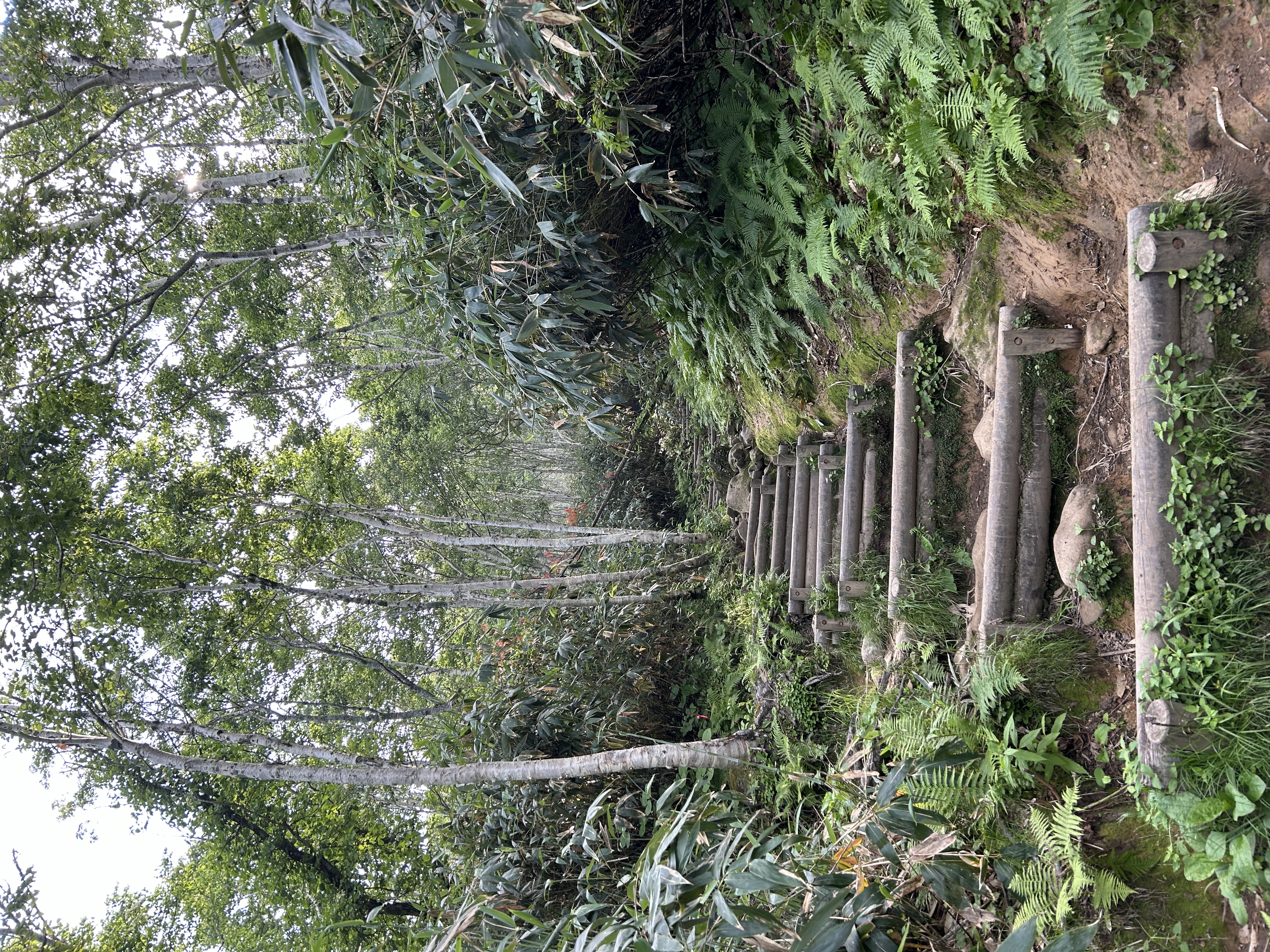 9時10分、山頂は開けていて、ど〜んと“羊蹄山”の姿をと思っていたのに霞んでてぼんやり水墨画のようなシルエットがわかるだけ。それでも大満足で「あんぱん」「あんドーナツ」をパクつく。帰路も景色と花を楽しみつつ。