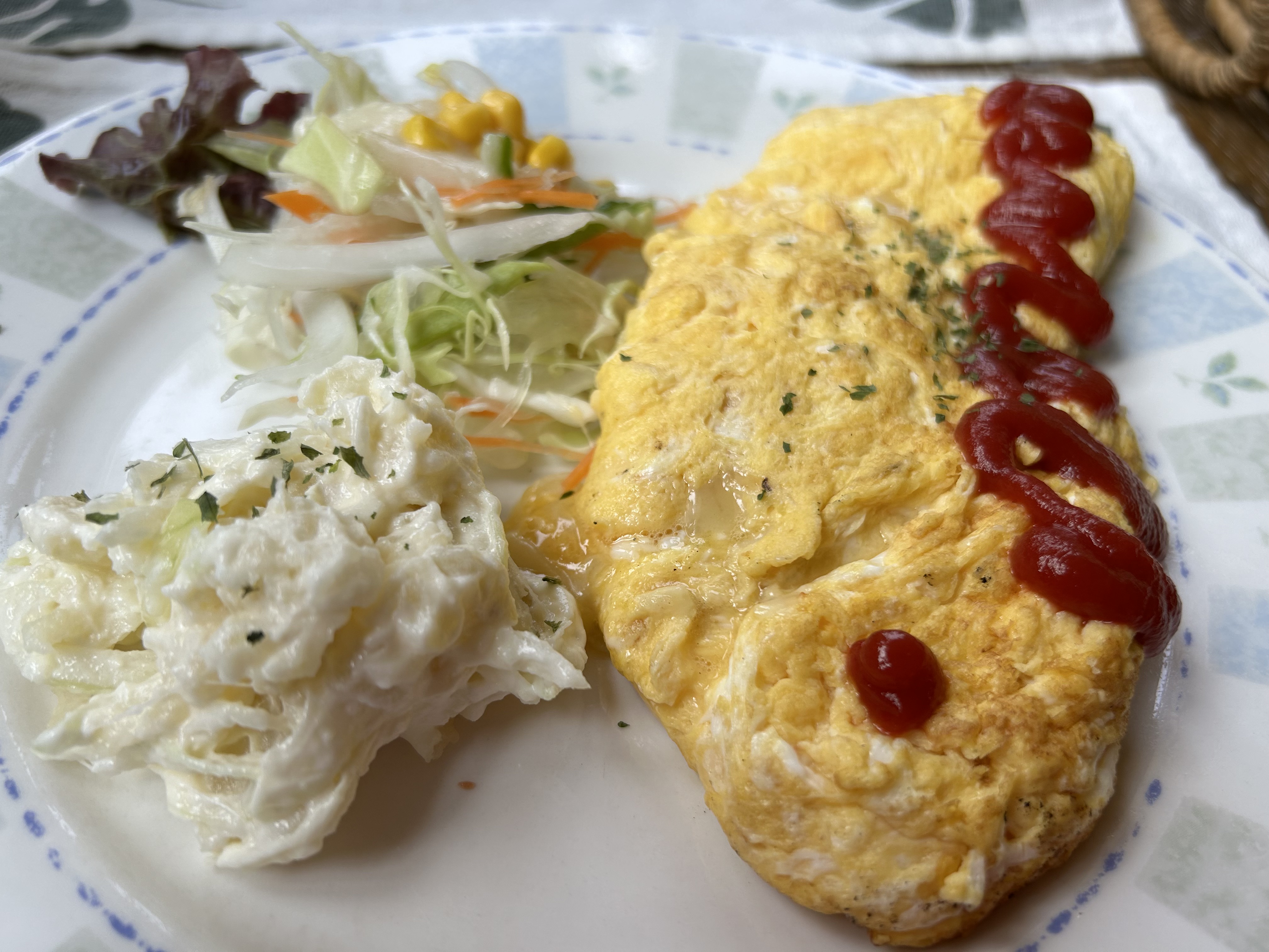 お店もご主人も年季が入っている。ラクレットチーズとポテトがメインの洋食屋さんのようです。み:「ランチセット(オムレツがメイン)」、訓:「チーズオムライスカレー」を注文。どちらにもチーズがたっぷり入ってました。*ポテトサラダがとても美味しかった(みーこ談)。