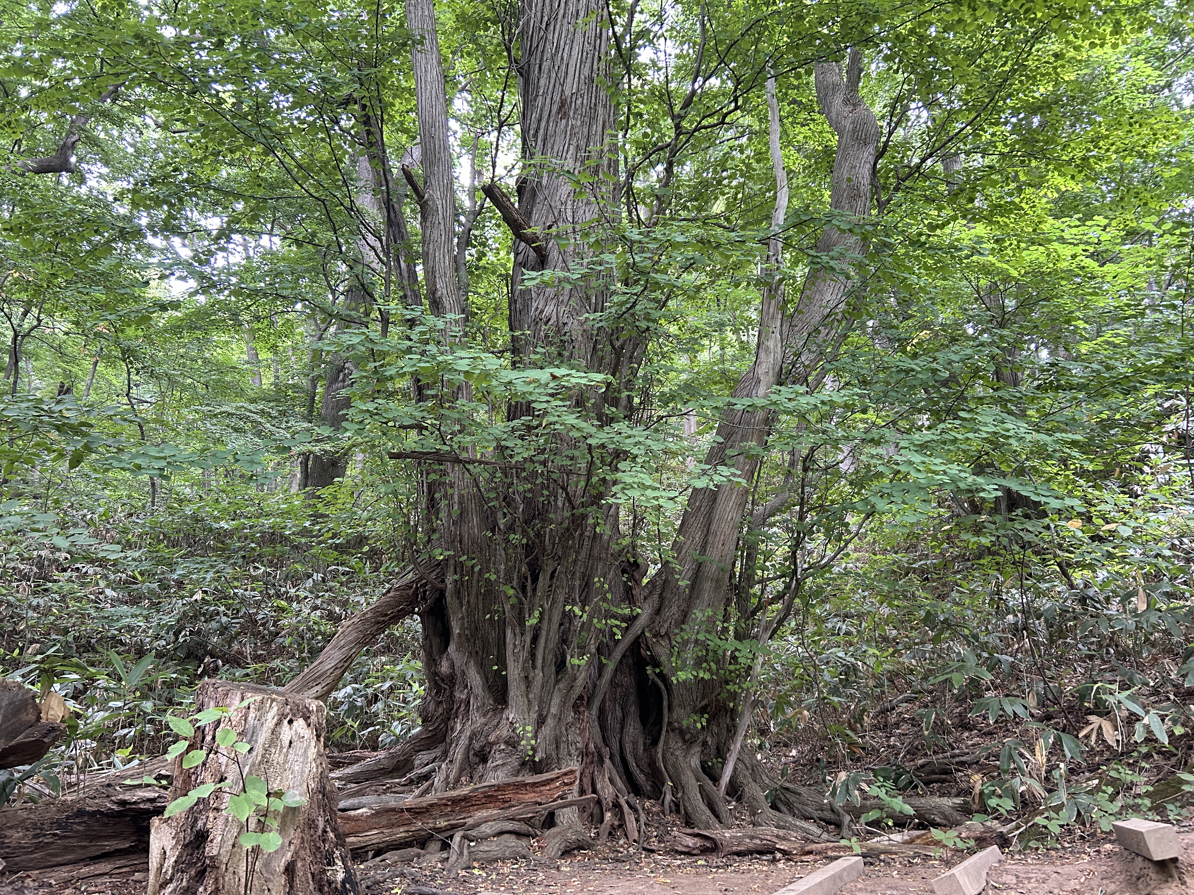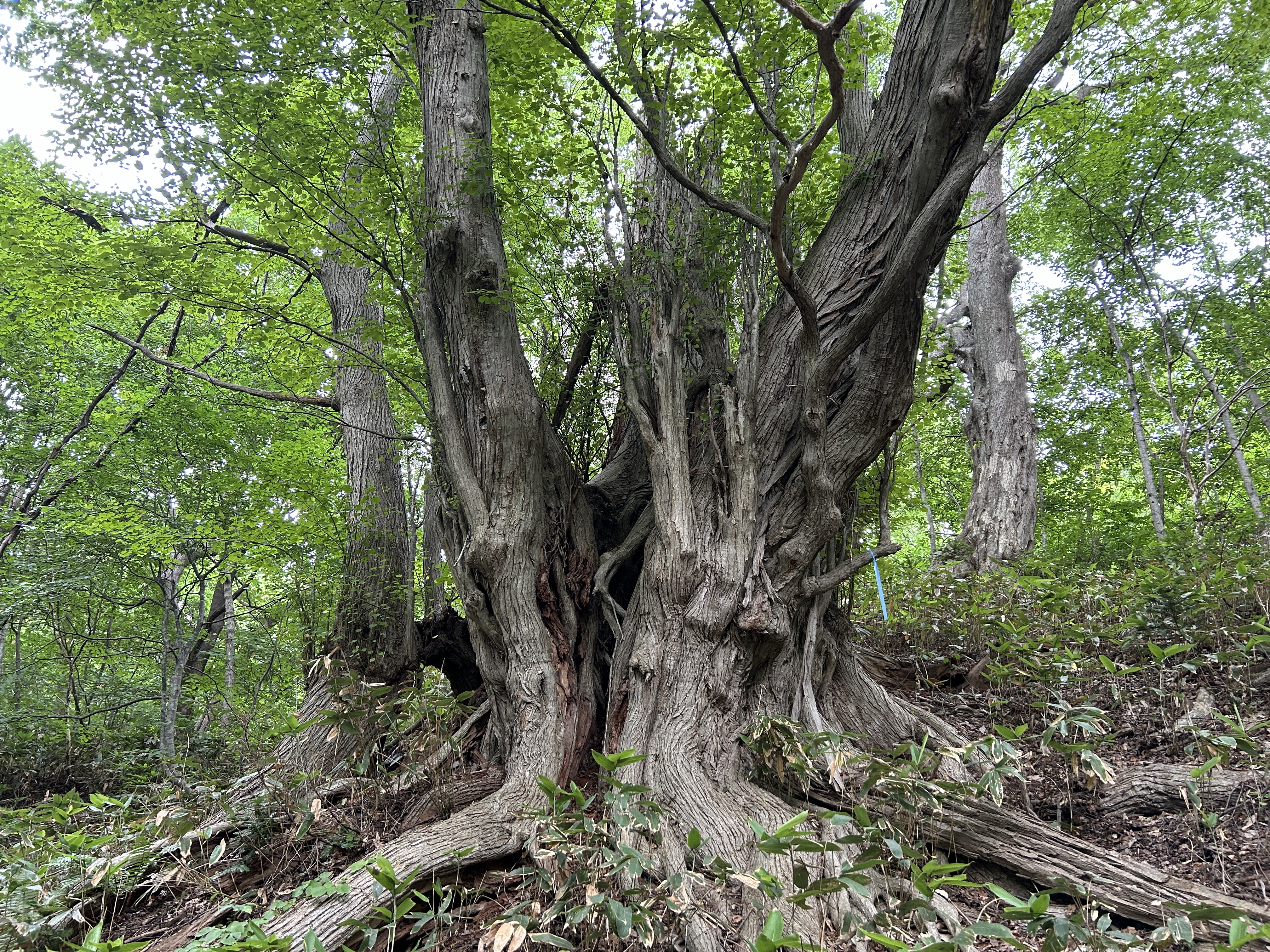 北海道神宮南一条駐車場に車を置いたまま、円山原始林自然遊歩道を歩いて円山山頂を目指します。蒸し暑く汗だくで何とか山頂(225m)へ。カツラの巨樹は想像以上にたくさん。カツラ以外にもミズナラ、ニガキ、オオバボダイジュ、ハリギリなど原始の森に相応しい。下りは動物園側を廻るコースを。楽しい山歩きでした。