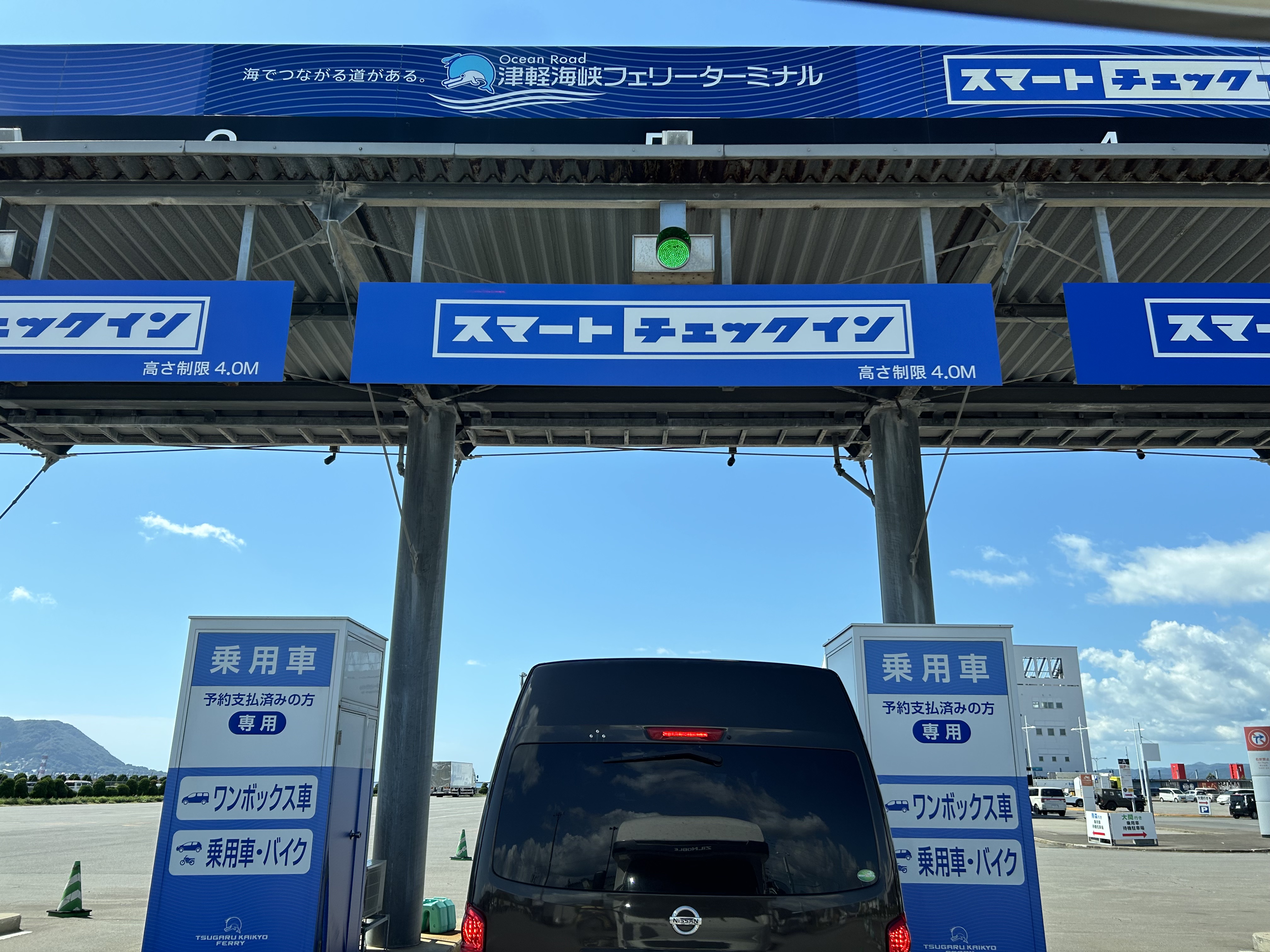 12時30分出港のフェリー“ブルーハピネス”に運良く2番目の乗船。進行方向右手の椅子席でほぼ4ヶ月楽しませてもらった北海道とお別れ。