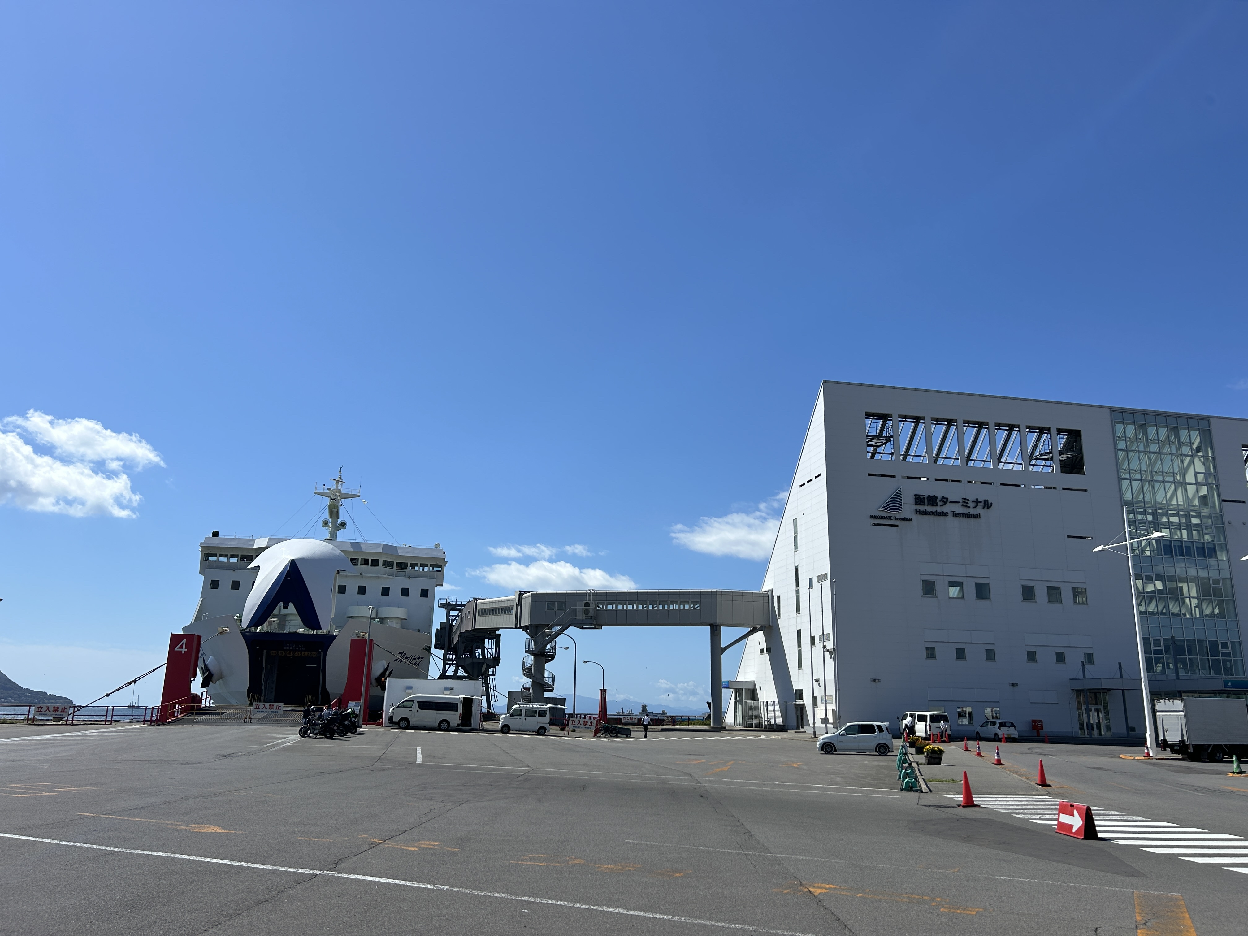 津軽海峡フェリー函館ターミナル間近のセブンでおむすび、サンドを各々選んで購入。
