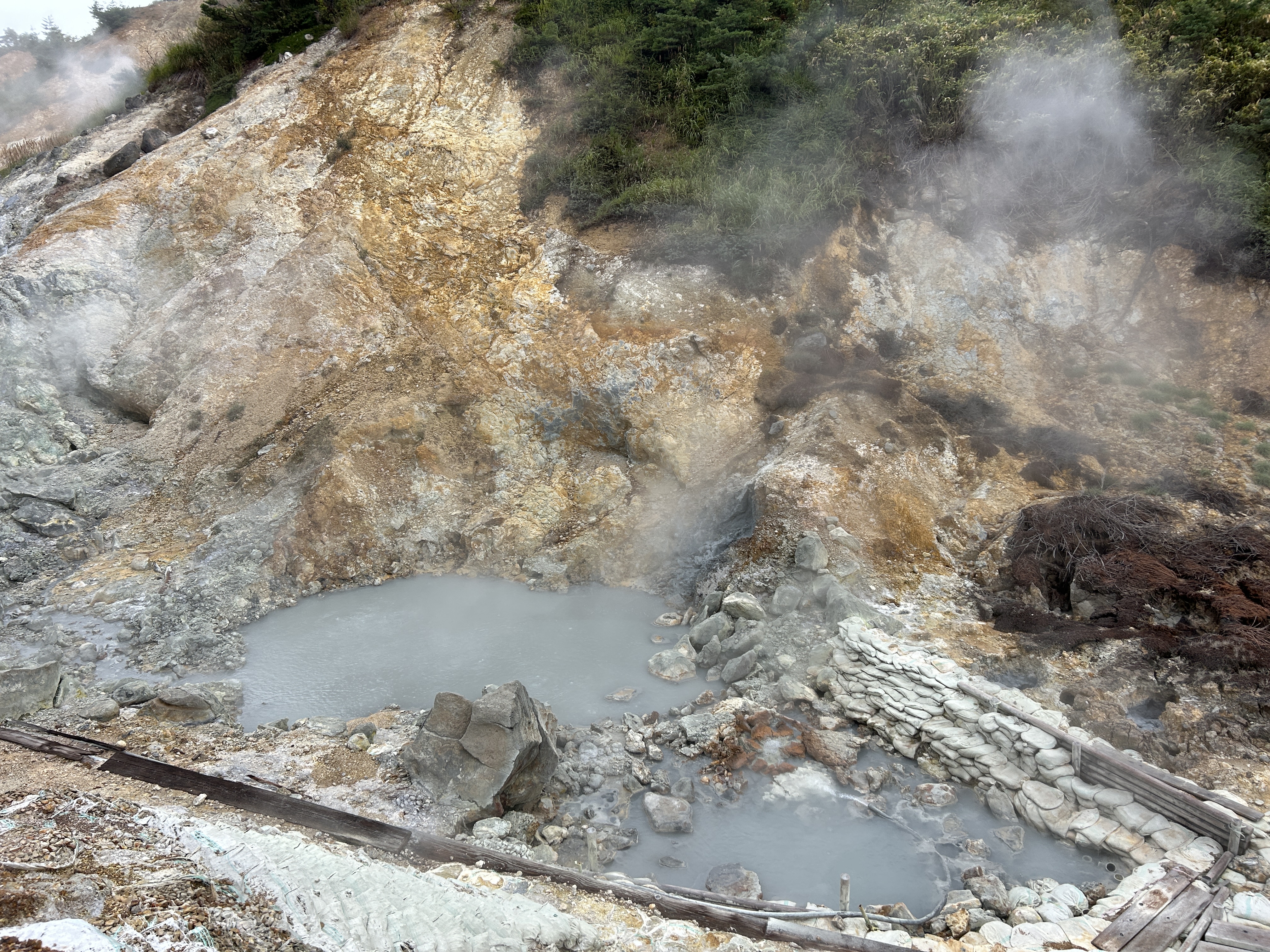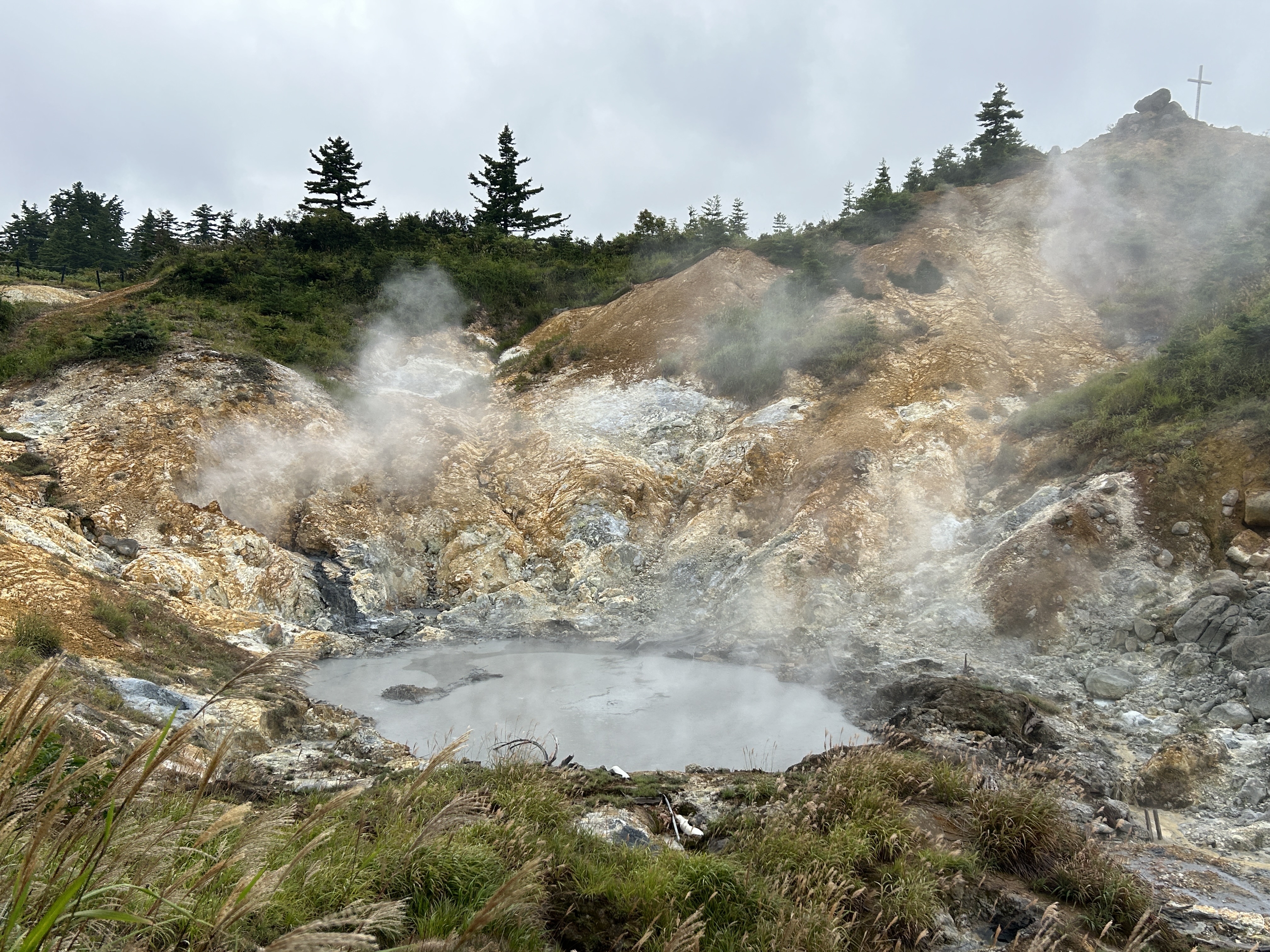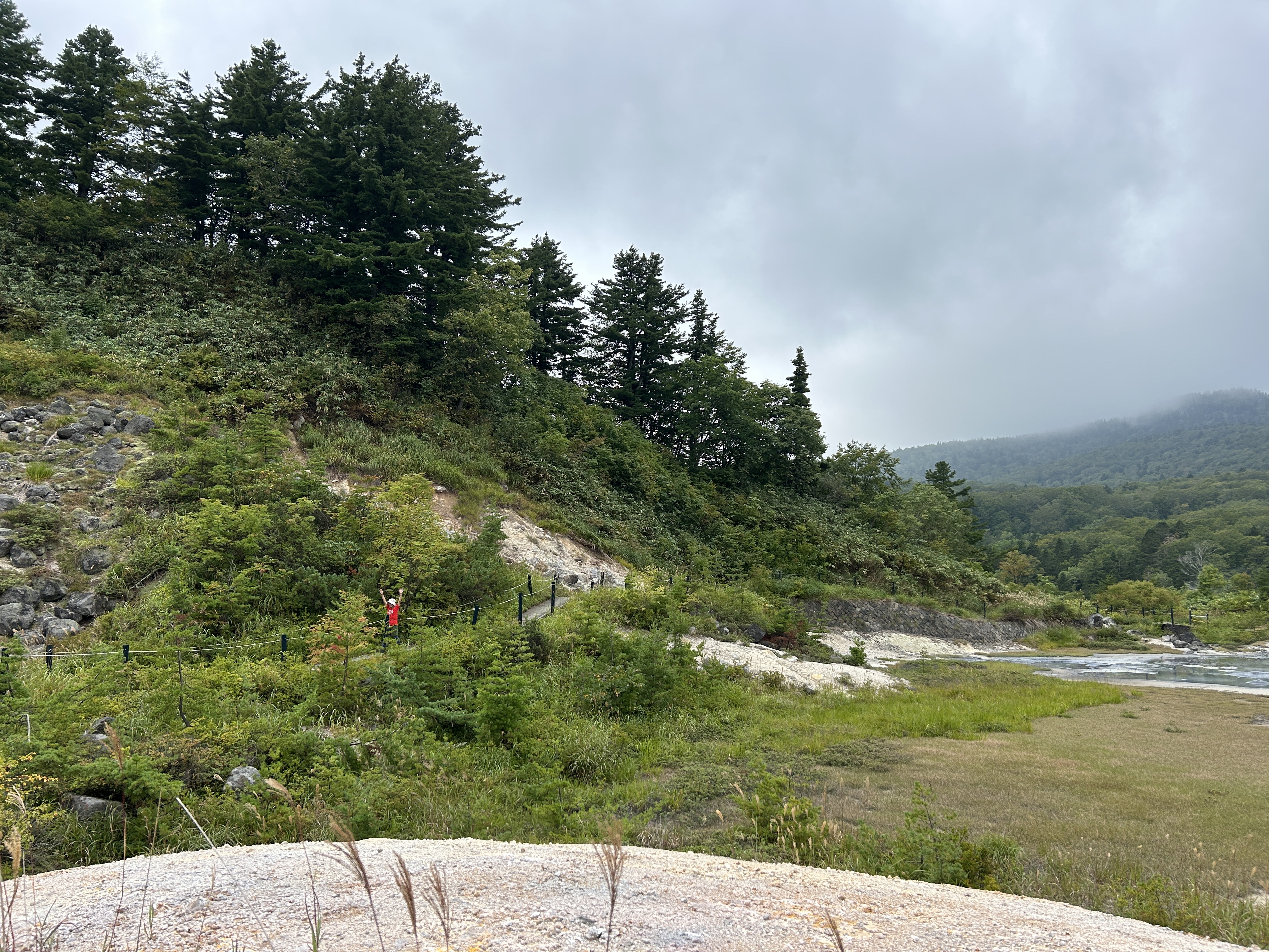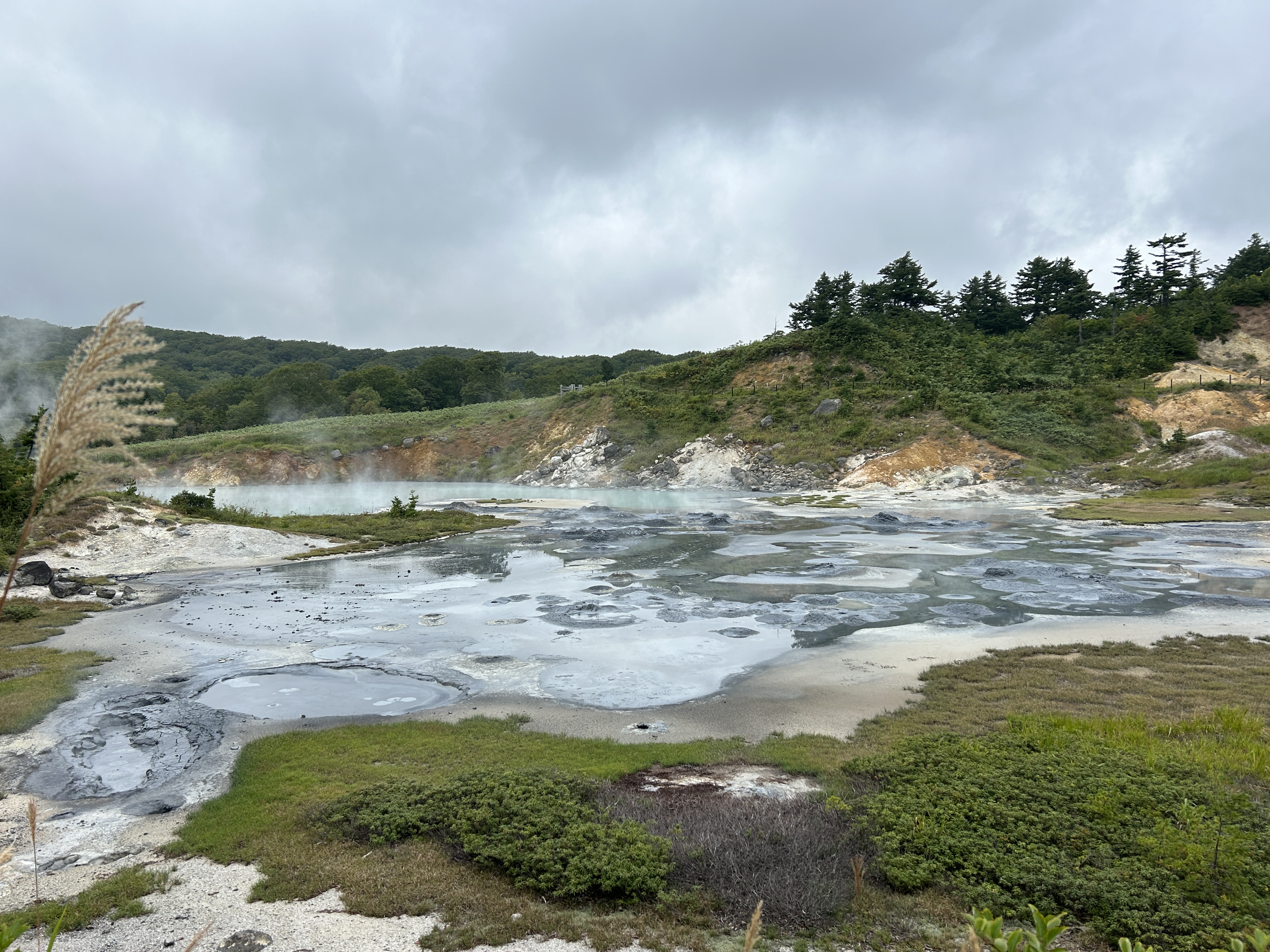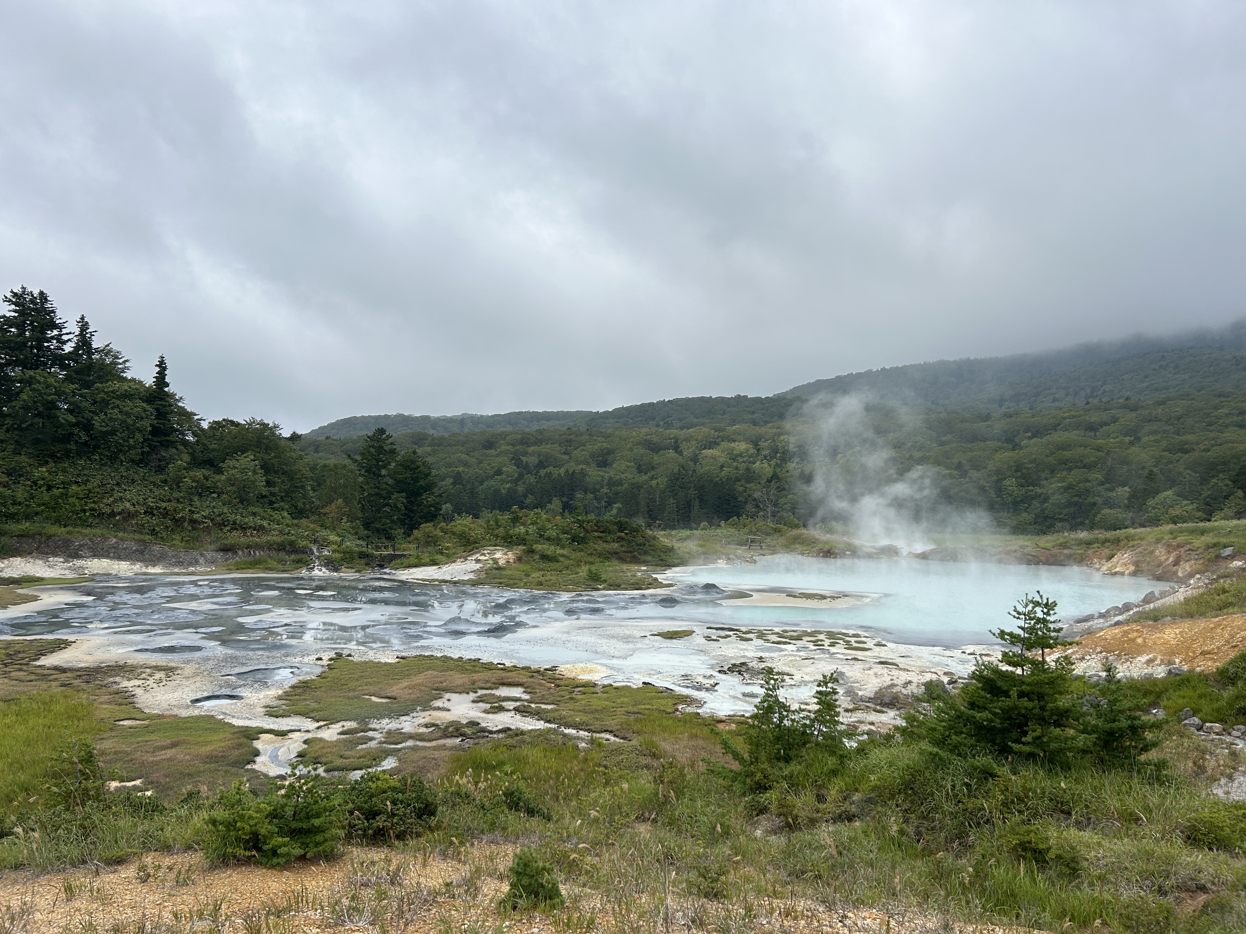 朝イチ(暑くなる前にとっとと歩く作戦)で来たので人が誰もいない。足を踏み入れた途端に、うぉ〜っ‼︎と声が上がる。多数の噴気とマッドポットのボコボコ音!大泥火山コースと大湯沼コースをたっぷりじっくり見て歩く。自然の力と美を十二分に見せつけられた感じ。素晴らしい!