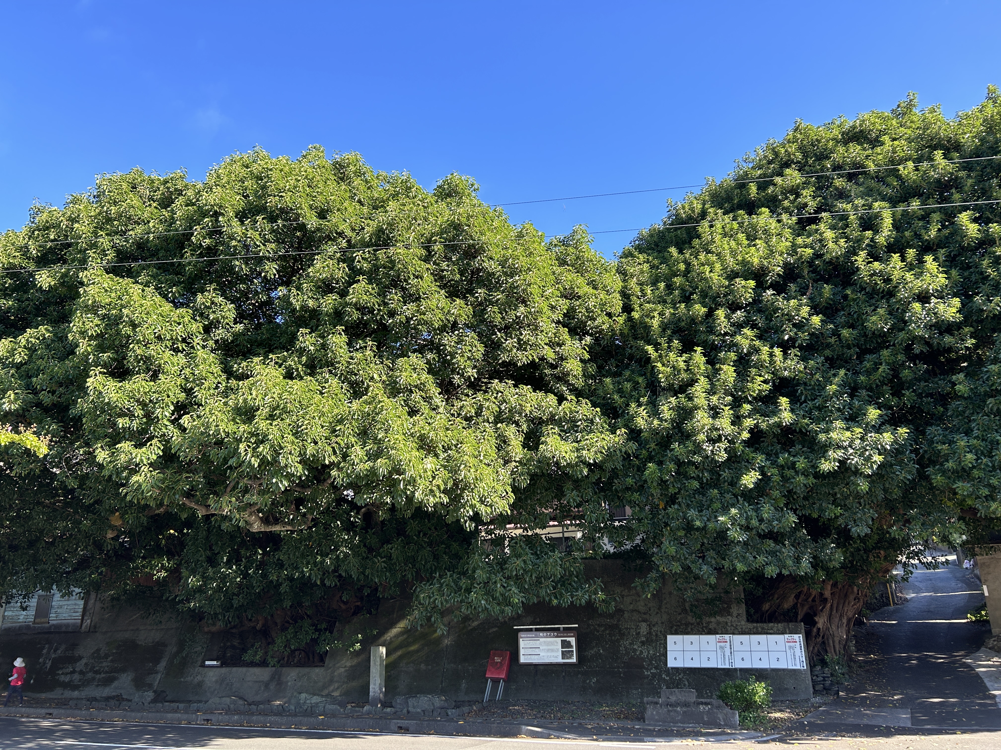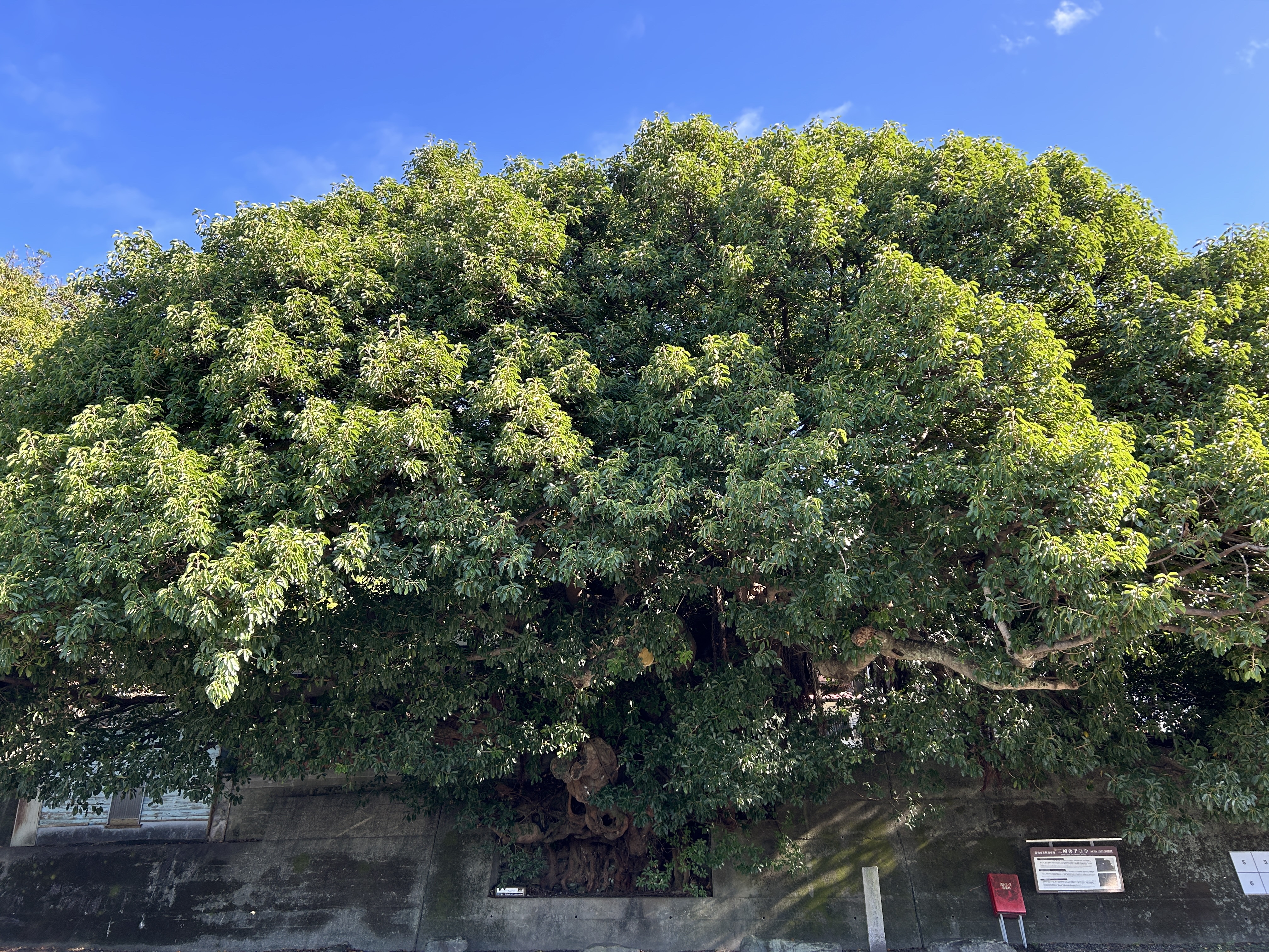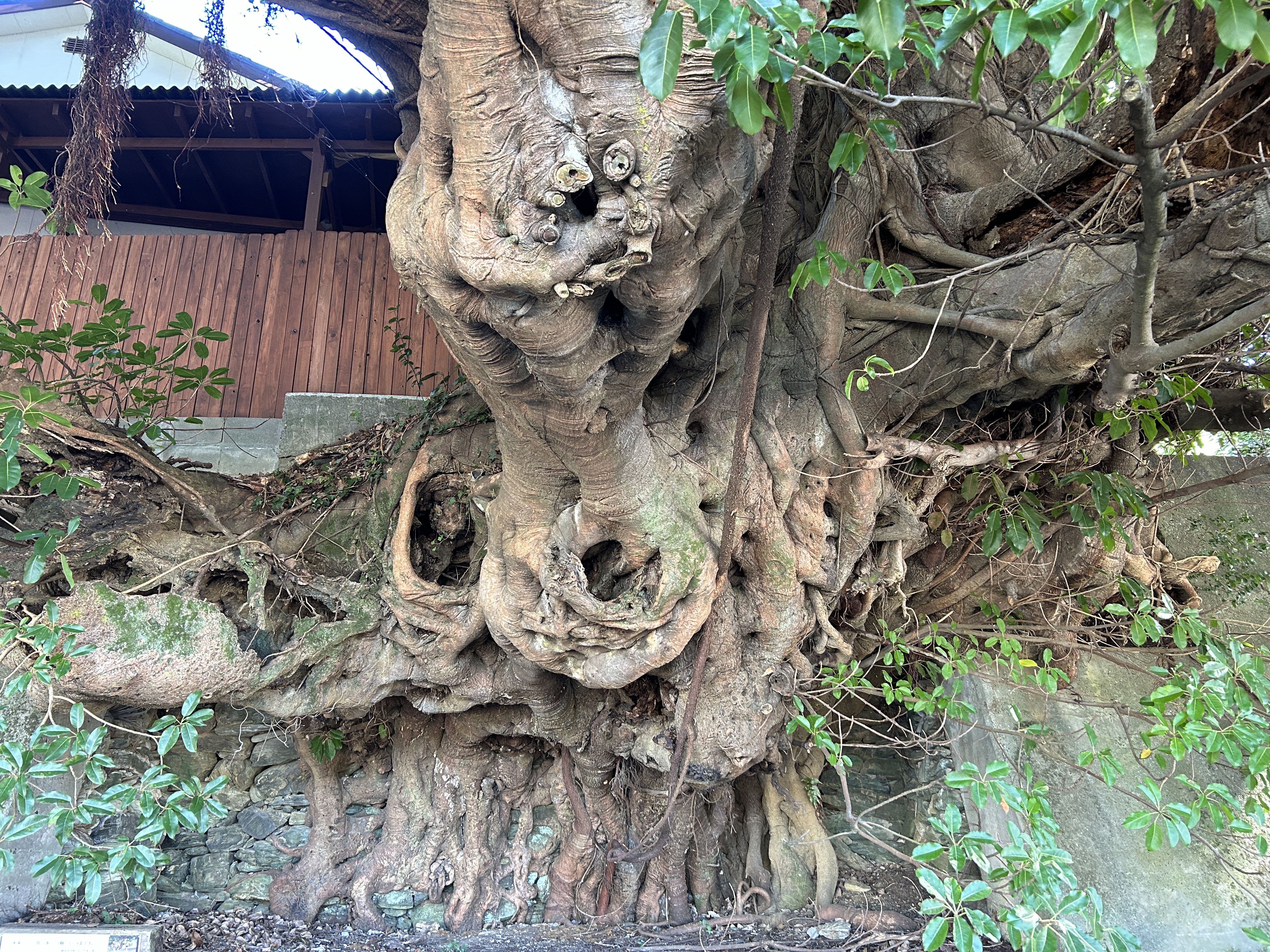 大正10年天然記念物に指定された巨樹。指定当時は7本あったそうですが現在でも4本残っていて堂々たるもの。気根もたくさん下がっていて南の植物っぽい!