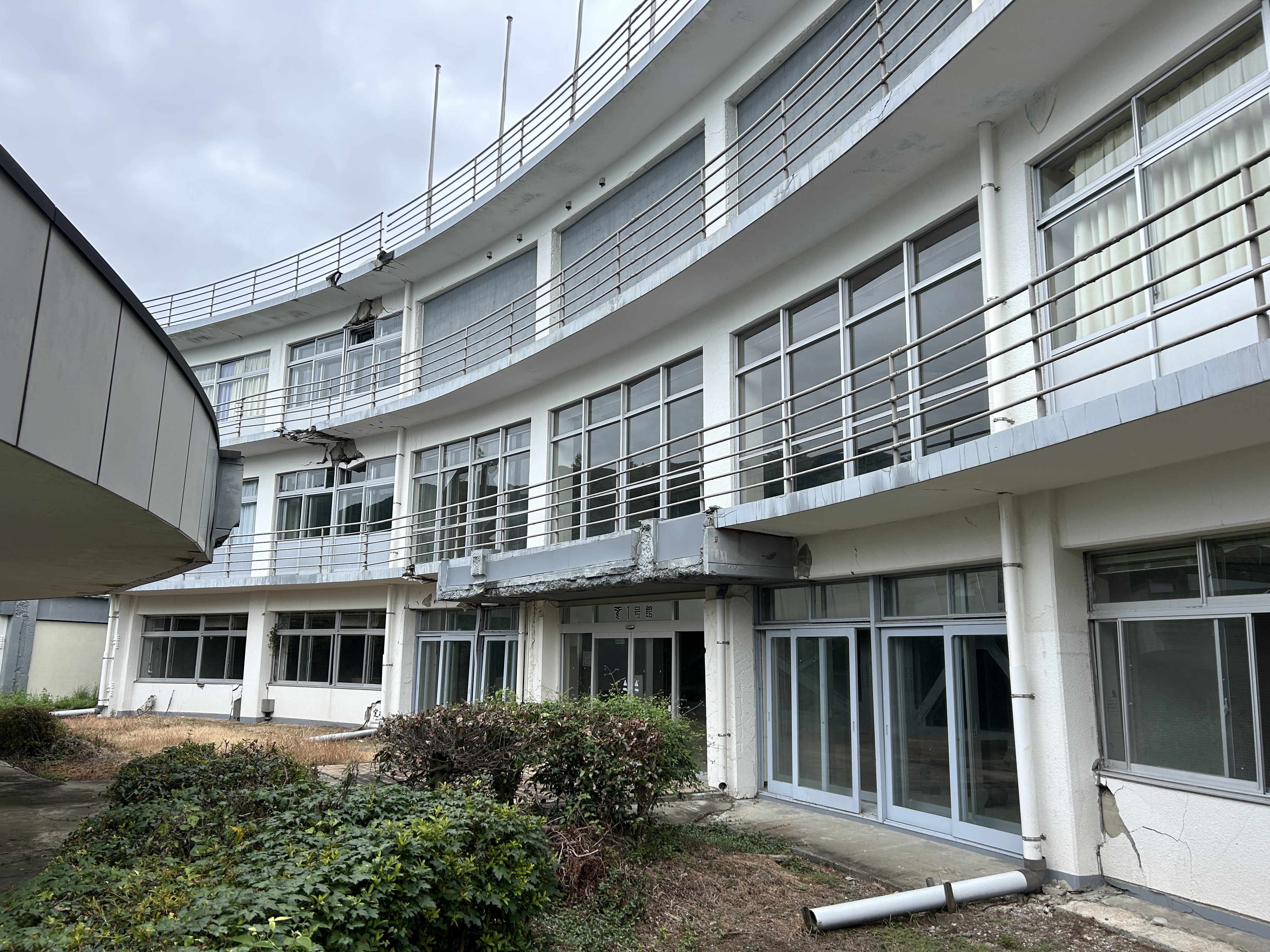 被災した東海大学の建物と敷地を利用。断層の真上に位置していた為、被害の様子が生々しく。熊本地震の凄さがよく分かりました。