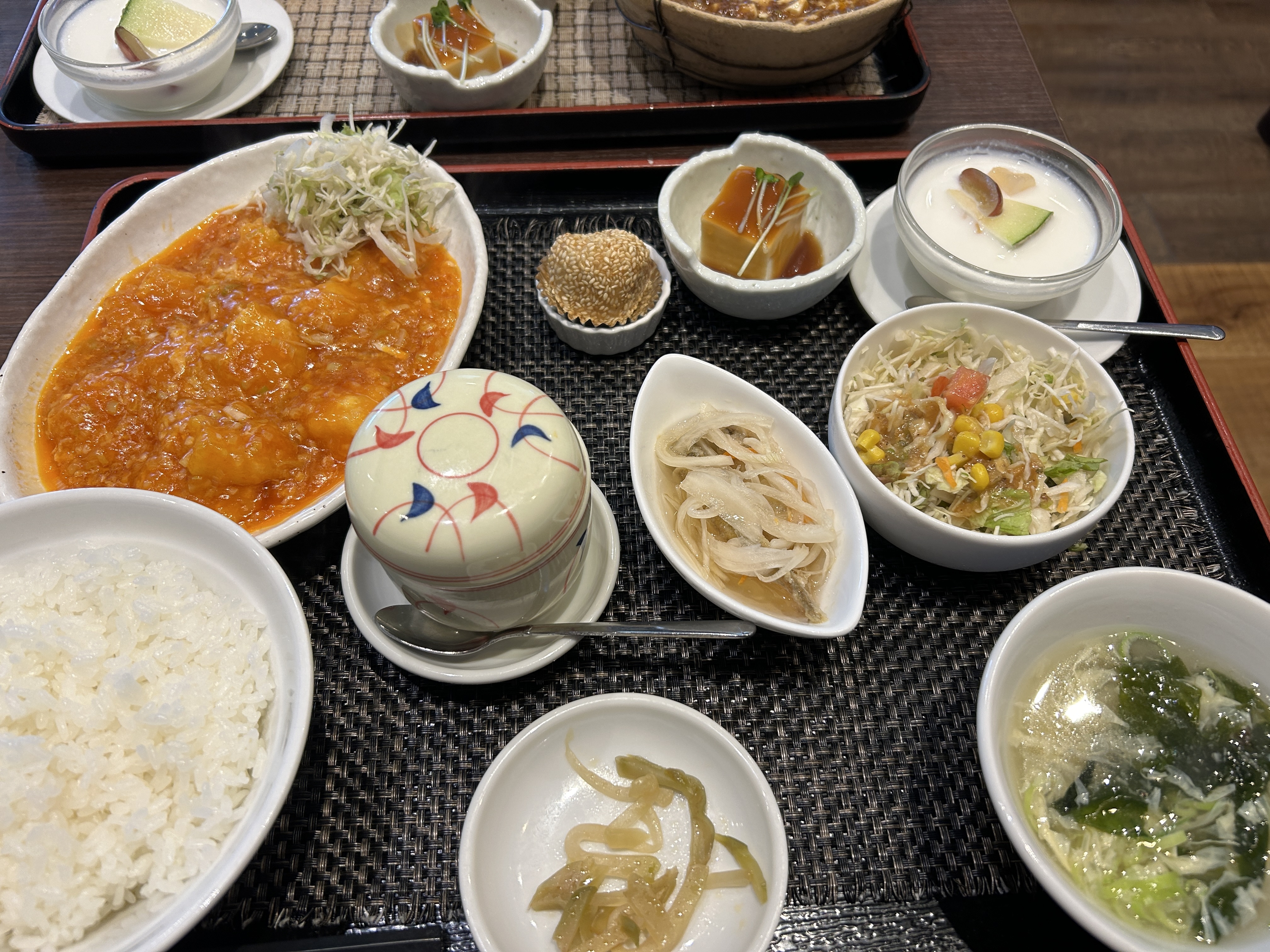 スタバに車を置いたまま隣の中華屋へ。「麻婆豆腐A定食」「エビチリA定食」我々にはちと量多すぎました。